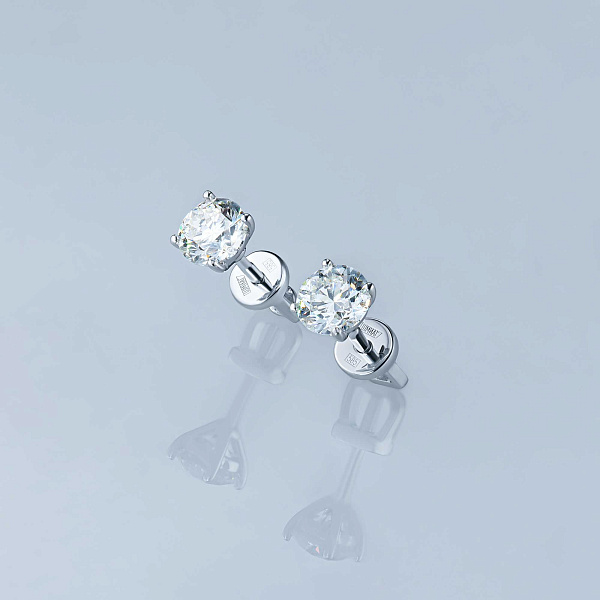 Пусеты из белого золота — великолепное пополнение вашей коллекции украшений. Белое золото подчеркивает игру света на алмазных гранях, не боится влаги, подходит для повседневного ношения. Наши товары реализуются только в фирменных салонах.