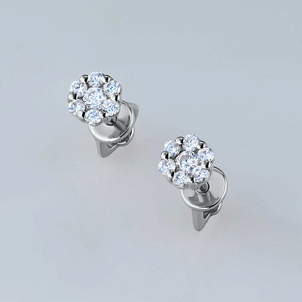 Пусеты из белого золота — великолепное пополнение вашей коллекции украшений. Белое золото подчеркивает игру света на алмазных гранях, не боится влаги, подходит для повседневного ношения. Наши товары реализуются только в фирменных салонах.