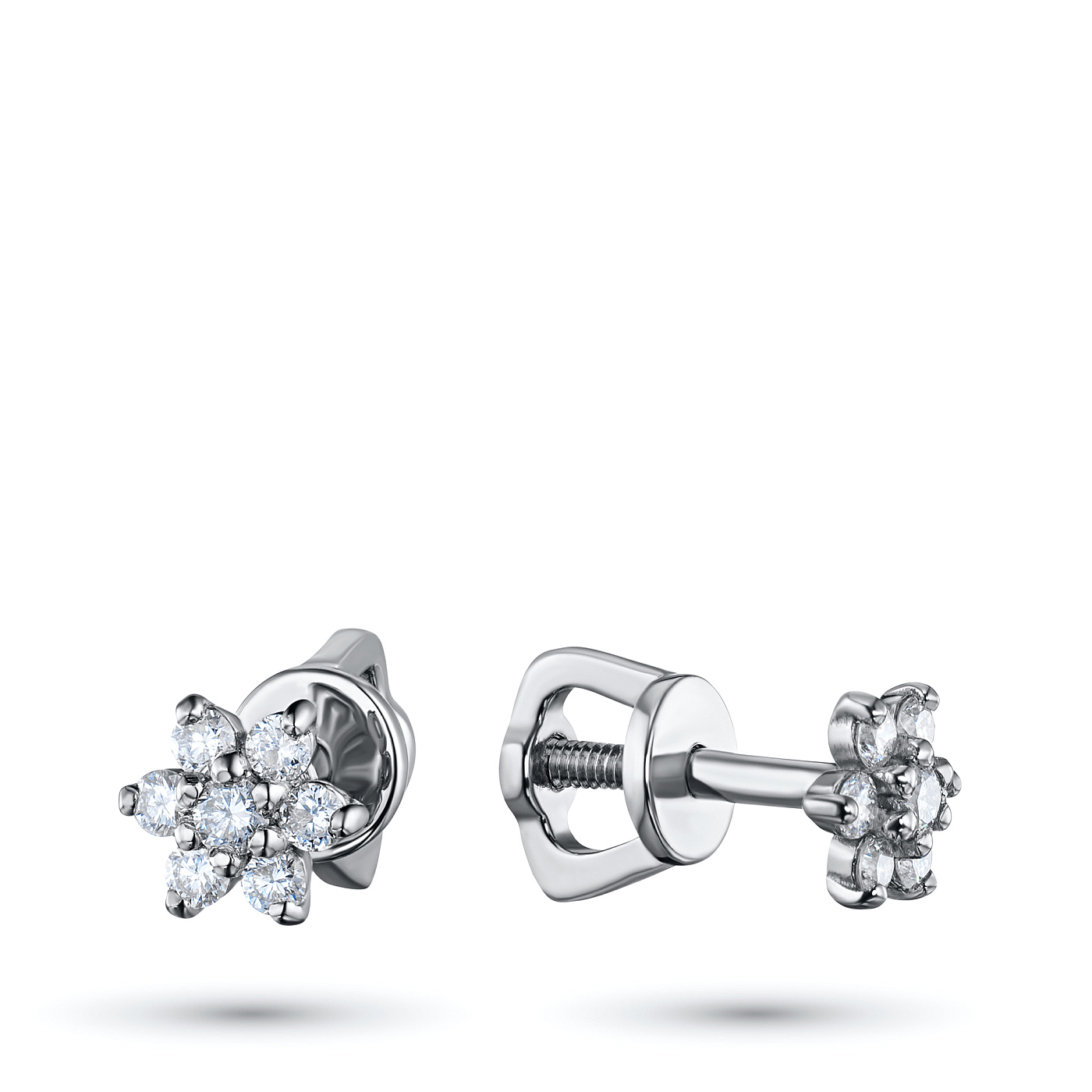 Пусеты из белого золота — великолепное пополнение вашей коллекции украшений. Белое золото подчеркивает игру света на алмазных гранях, не боится влаги, подходит для повседневного ношения. Наши товары реализуются только в фирменных салонах.