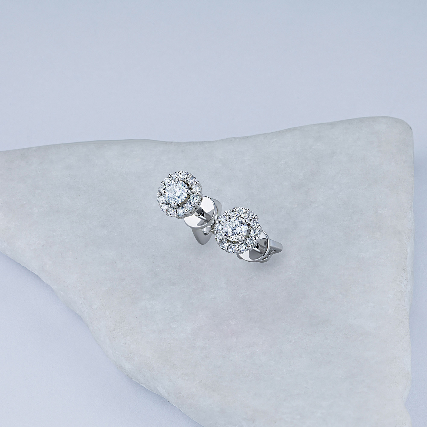 Пусеты из белого золота — великолепное пополнение вашей коллекции украшений. Белое золото подчеркивает игру света на алмазных гранях, не боится влаги, подходит для повседневного ношения. Наши товары реализуются только в фирменных салонах.