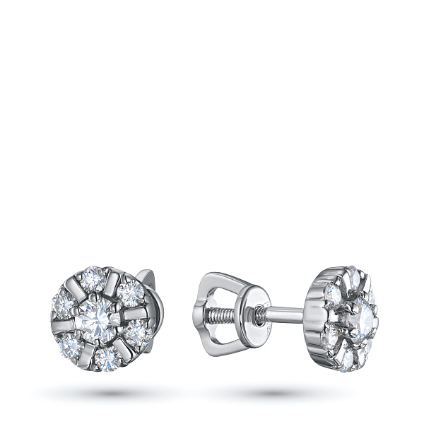 Пусеты из белого золота — великолепное пополнение вашей коллекции украшений. Белое золото подчеркивает игру света на алмазных гранях, не боится влаги, подходит для повседневного ношения. Наши товары реализуются только в фирменных салонах.