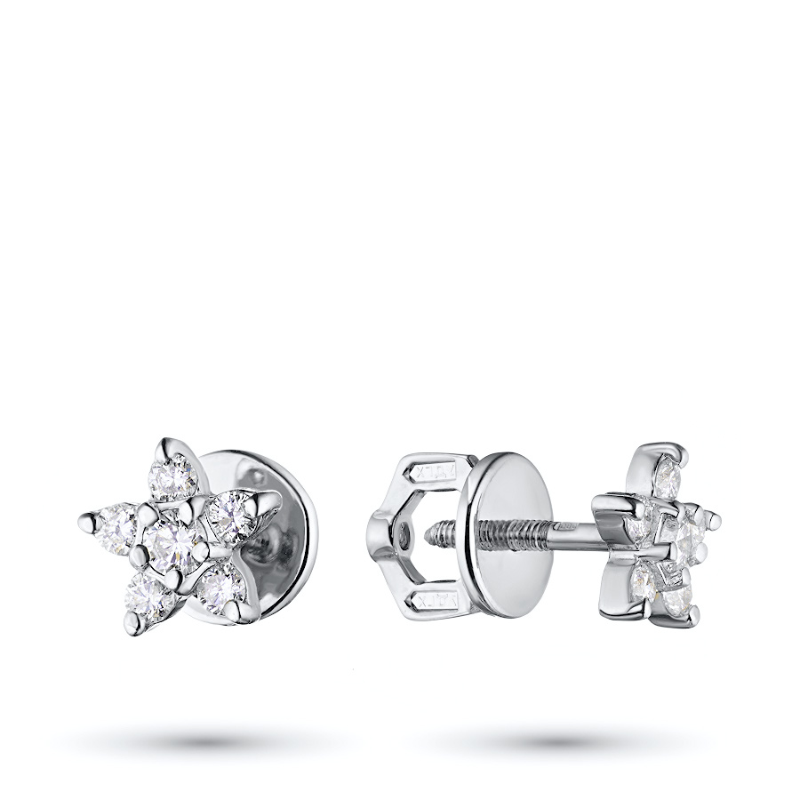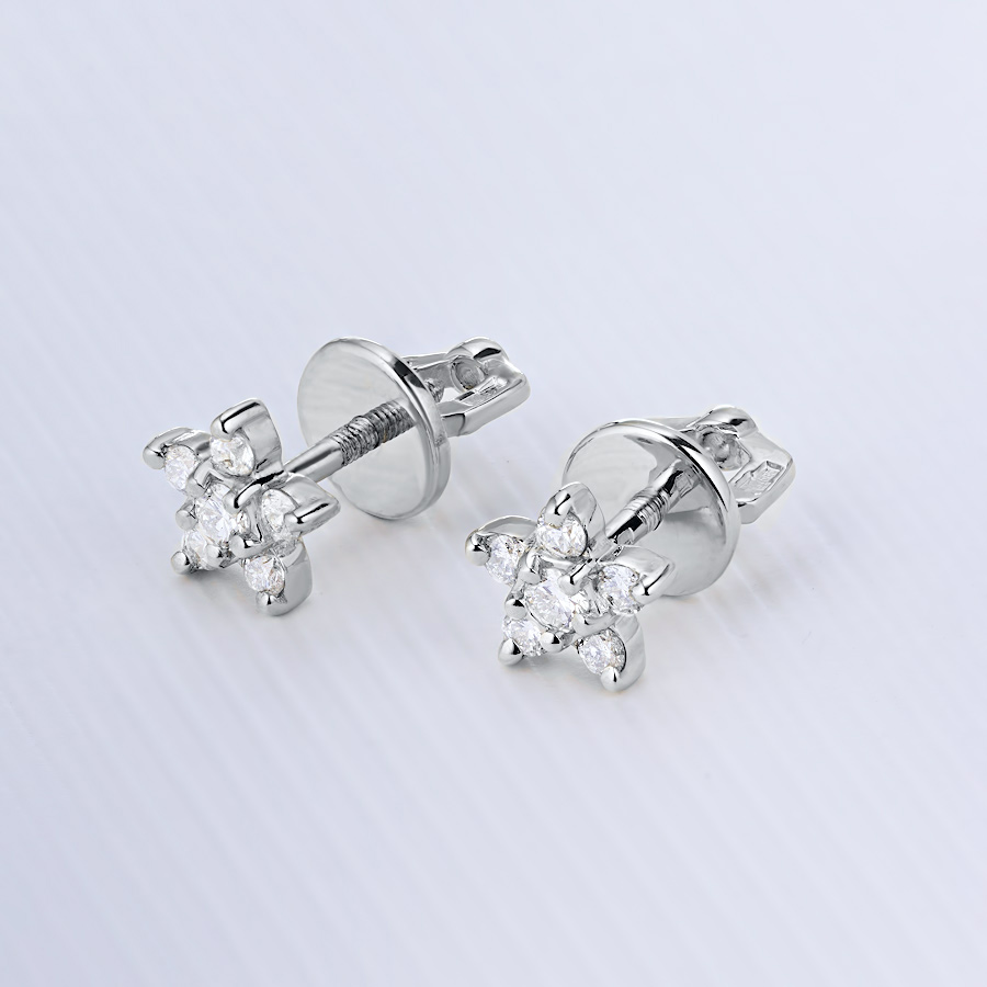 Пусеты из белого золота — великолепное пополнение вашей коллекции украшений. Белое золото подчеркивает игру света на алмазных гранях, не боится влаги, подходит для повседневного ношения. Наши товары реализуются только в фирменных салонах.