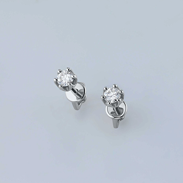Пусеты из белого золота — великолепное пополнение вашей коллекции украшений. Белое золото подчеркивает игру света на алмазных гранях, не боится влаги, подходит для повседневного ношения. Наши товары реализуются только в фирменных салонах.