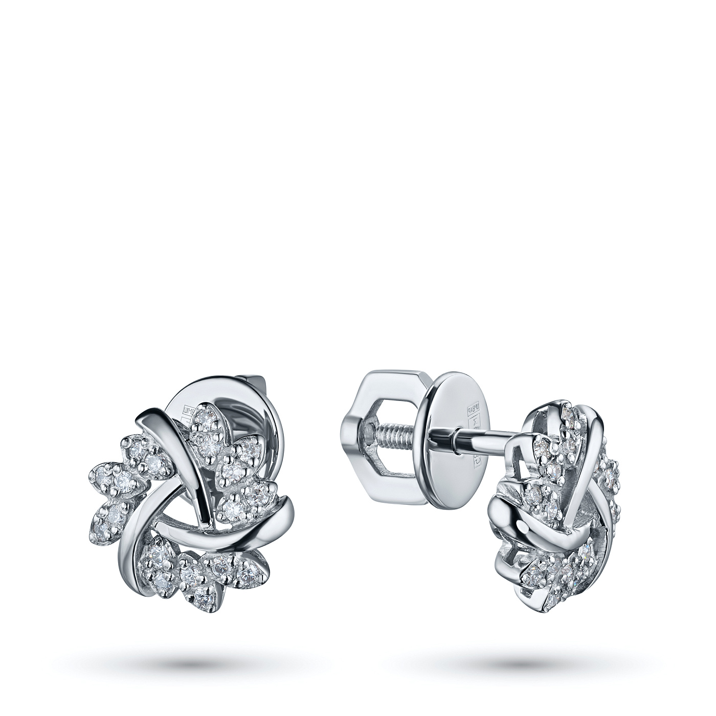 Пусеты из белого золота — великолепное пополнение вашей коллекции украшений. Белое золото подчеркивает игру света на алмазных гранях, не боится влаги, подходит для повседневного ношения. Наши товары реализуются только в фирменных салонах.
