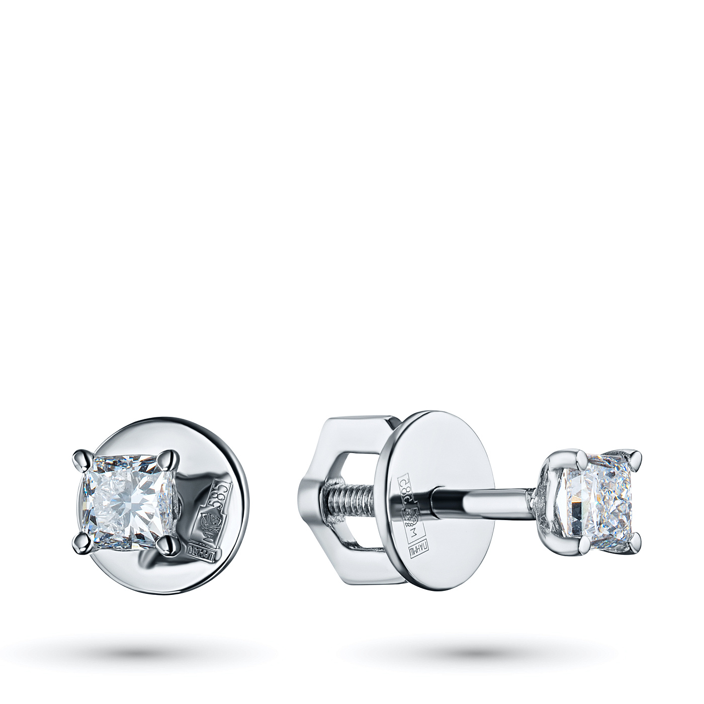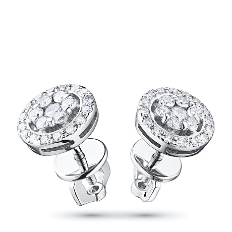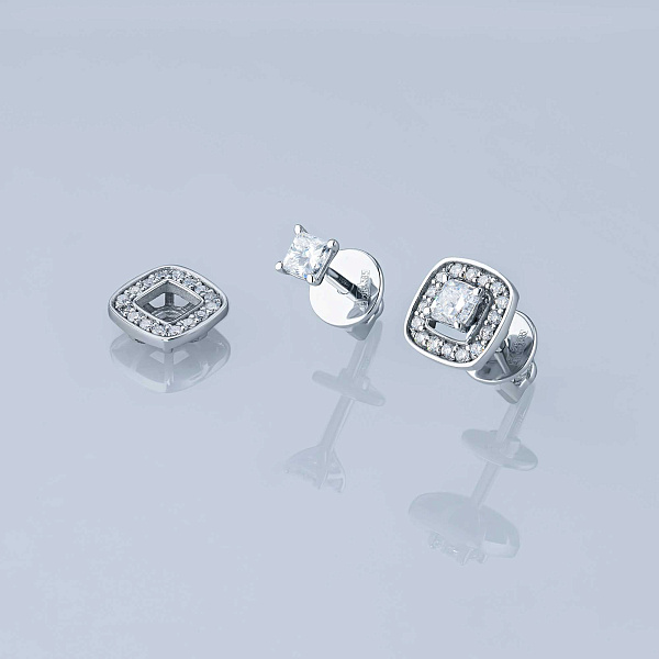 Пусеты из белого золота — великолепное пополнение вашей коллекции украшений. Белое золото подчеркивает игру света на алмазных гранях, не боится влаги, подходит для повседневного ношения. Наши товары реализуются только в фирменных салонах.