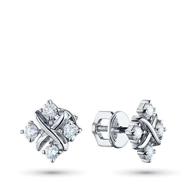Пусеты из белого золота — великолепное пополнение вашей коллекции украшений. Белое золото подчеркивает игру света на алмазных гранях, не боится влаги, подходит для повседневного ношения. Наши товары реализуются только в фирменных салонах.