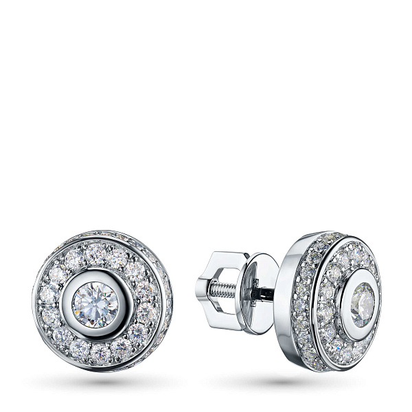 Пусеты из белого золота — великолепное пополнение вашей коллекции украшений. Белое золото подчеркивает игру света на алмазных гранях, не боится влаги, подходит для повседневного ношения. Наши товары реализуются только в фирменных салонах.