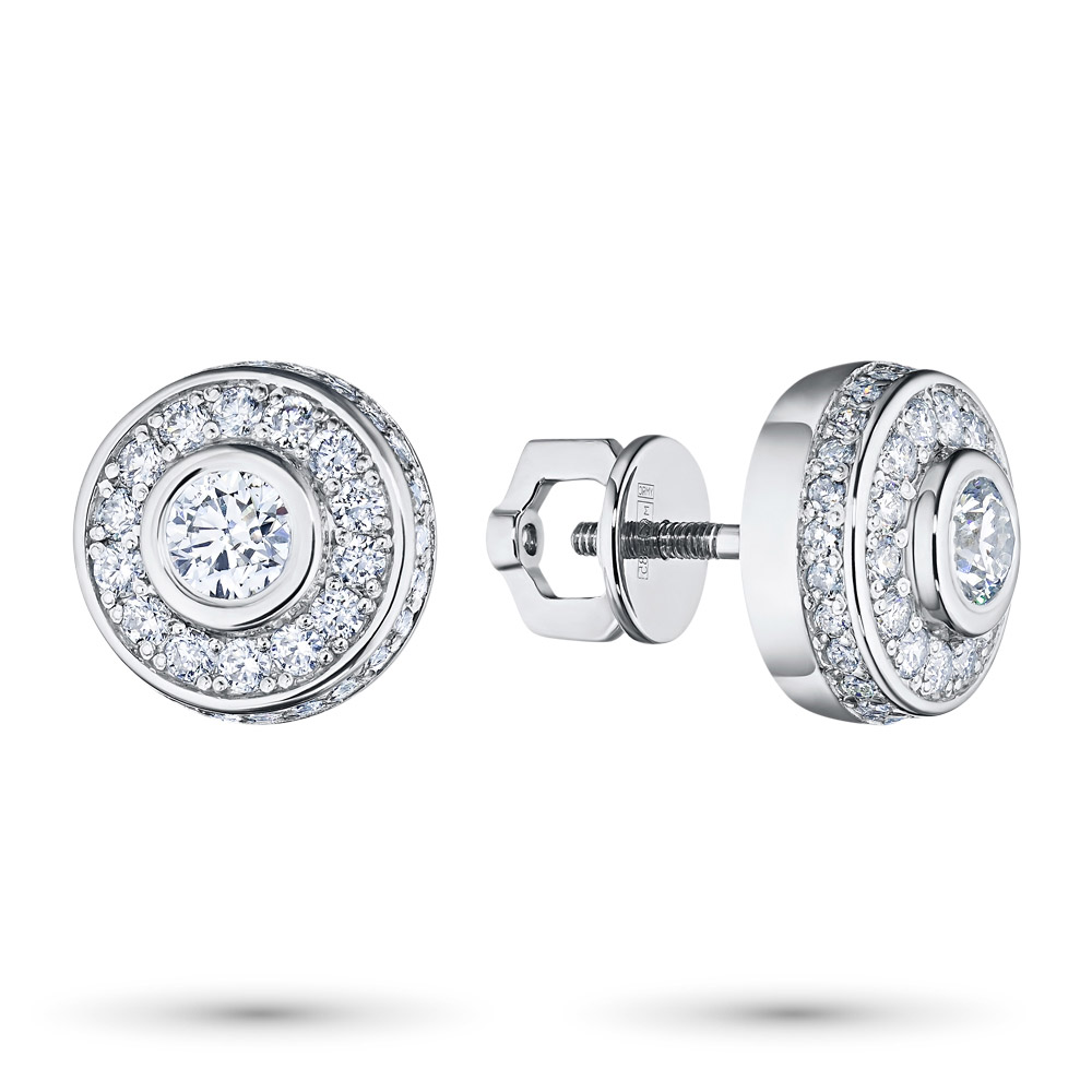 Пусеты из белого золота — великолепное пополнение вашей коллекции украшений. Продается по цене от производителя (660 000 ₸). Ювелирное изделие с настоящими бриллиантами изготовлено на заводе «ЭПЛ Даймонд». Белое золото подчеркивает игру света на алмазных гранях, не боится влаги, подходит для повседневного ношения. Наши товары реализуются только в фирменных салонах.