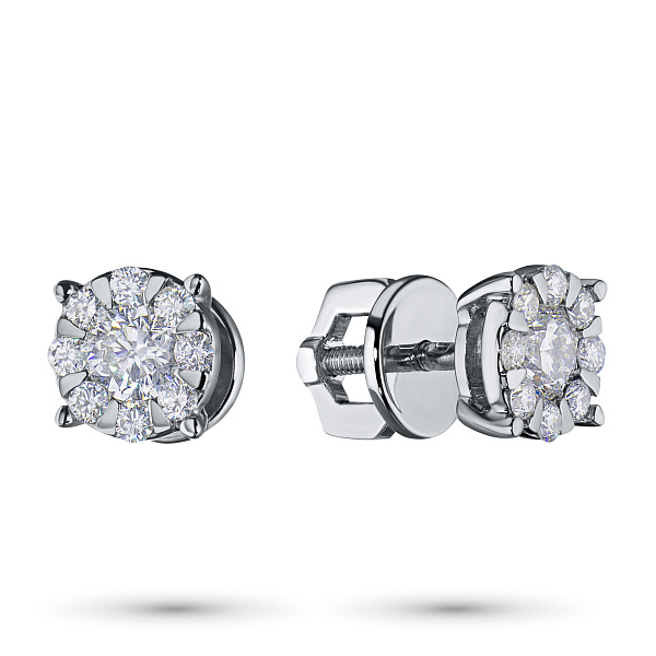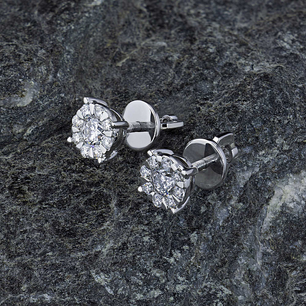 Пусеты из белого золота — великолепное пополнение вашей коллекции украшений. Белое золото подчеркивает игру света на алмазных гранях, не боится влаги, подходит для повседневного ношения. Наши товары реализуются только в фирменных салонах.
