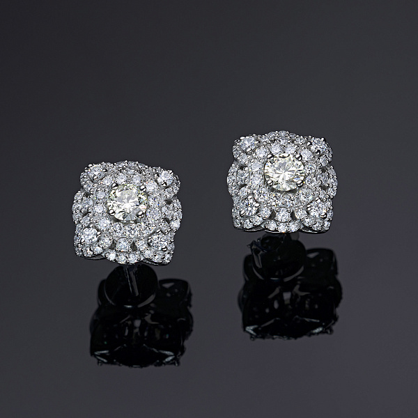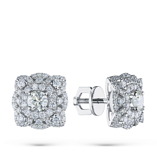 Пусеты из белого золота — великолепное пополнение вашей коллекции украшений. Белое золото подчеркивает игру света на алмазных гранях, не боится влаги, подходит для повседневного ношения. Наши товары реализуются только в фирменных салонах.