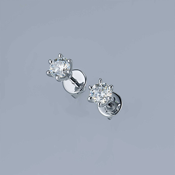 Пусеты из белого золота — великолепное пополнение вашей коллекции украшений. Белое золото подчеркивает игру света на алмазных гранях, не боится влаги, подходит для повседневного ношения. Наши товары реализуются только в фирменных салонах.