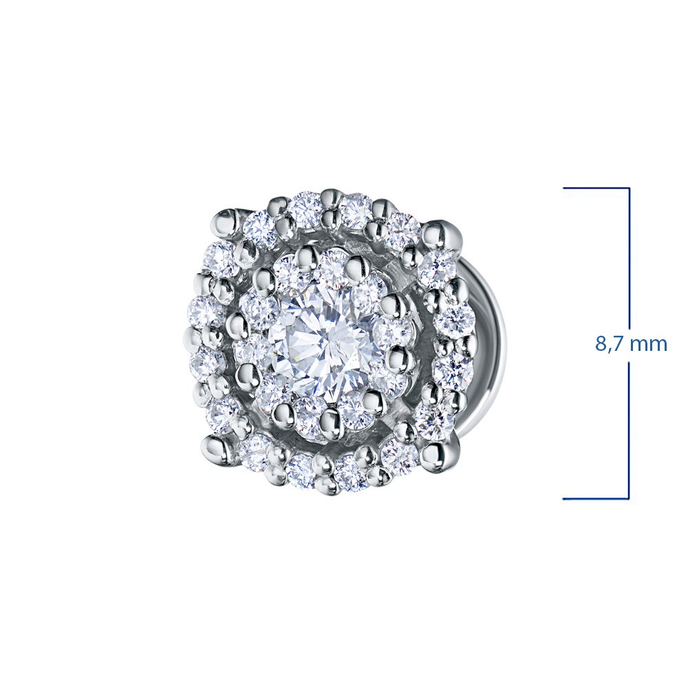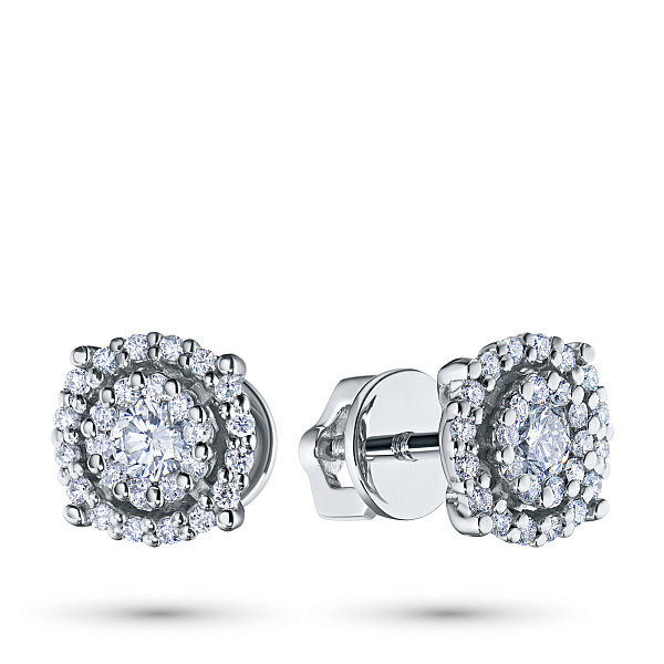 Пусеты из белого золота — великолепное пополнение вашей коллекции украшений. Белое золото подчеркивает игру света на алмазных гранях, не боится влаги, подходит для повседневного ношения. Наши товары реализуются только в фирменных салонах.