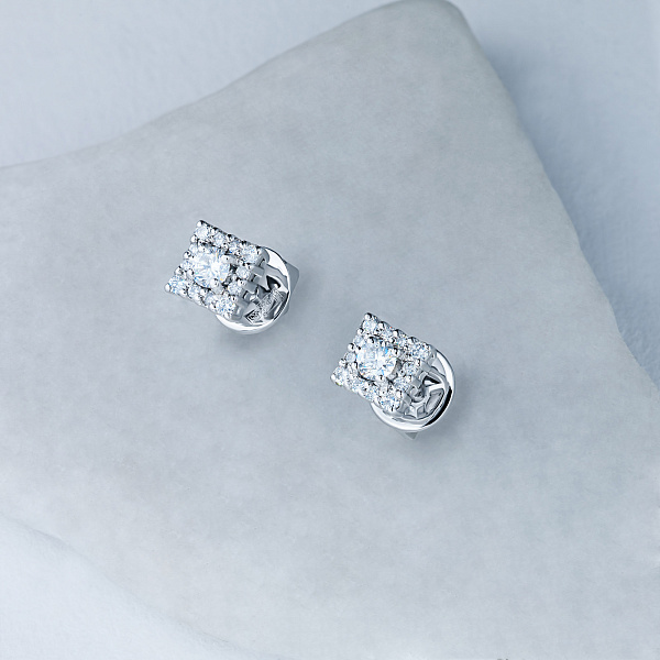 Пусеты из белого золота — великолепное пополнение вашей коллекции украшений. Белое золото подчеркивает игру света на алмазных гранях, не боится влаги, подходит для повседневного ношения. Наши товары реализуются только в фирменных салонах.