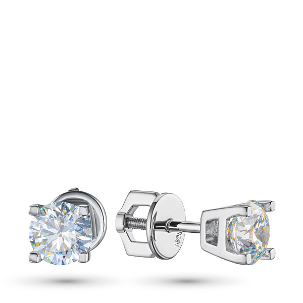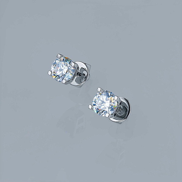 Пусеты из белого золота — великолепное пополнение вашей коллекции украшений. Белое золото подчеркивает игру света на алмазных гранях, не боится влаги, подходит для повседневного ношения. Наши товары реализуются только в фирменных салонах.