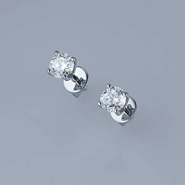 Пусеты из белого золота — великолепное пополнение вашей коллекции украшений. Белое золото подчеркивает игру света на алмазных гранях, не боится влаги, подходит для повседневного ношения. Наши товары реализуются только в фирменных салонах.
