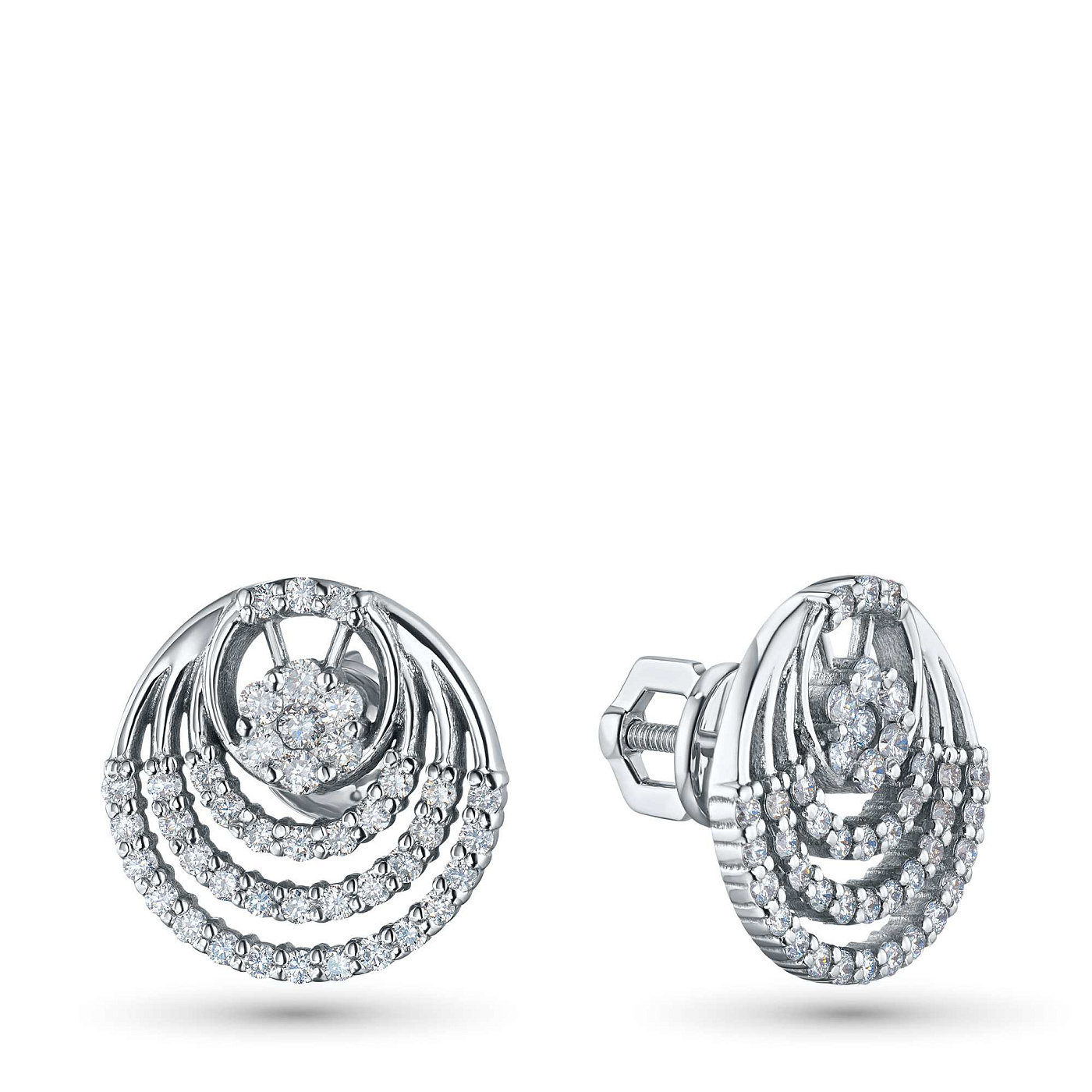Пусеты из белого золота — великолепное пополнение вашей коллекции украшений. Белое золото подчеркивает игру света на алмазных гранях, не боится влаги, подходит для повседневного ношения. Наши товары реализуются только в фирменных салонах.