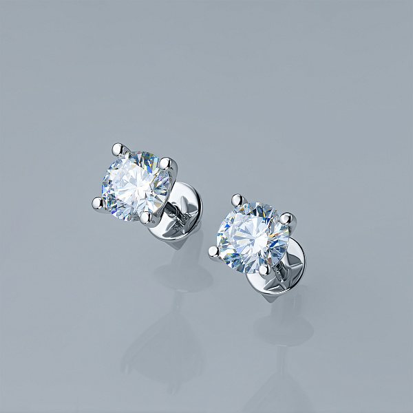 Пусеты из белого золота — великолепное пополнение вашей коллекции украшений. Белое золото подчеркивает игру света на алмазных гранях, не боится влаги, подходит для повседневного ношения. Наши товары реализуются только в фирменных салонах.