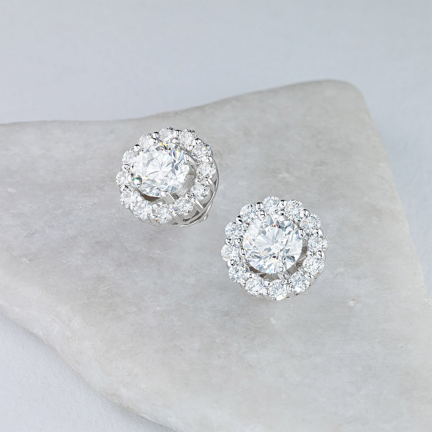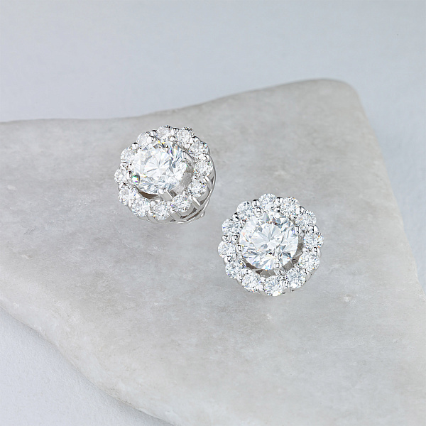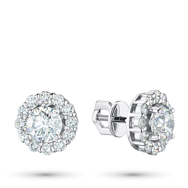 Пусеты из белого золота — великолепное пополнение вашей коллекции украшений. Белое золото подчеркивает игру света на алмазных гранях, не боится влаги, подходит для повседневного ношения. Наши товары реализуются только в фирменных салонах.
