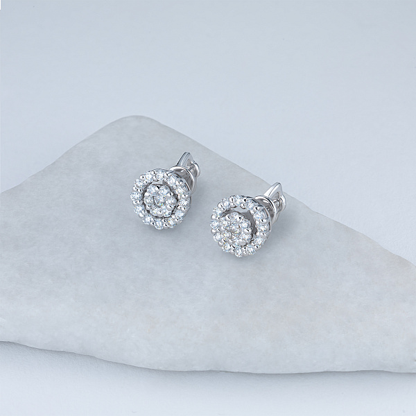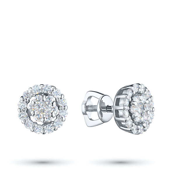 Пусеты из белого золота — великолепное пополнение вашей коллекции украшений. Белое золото подчеркивает игру света на алмазных гранях, не боится влаги, подходит для повседневного ношения. Наши товары реализуются только в фирменных салонах.