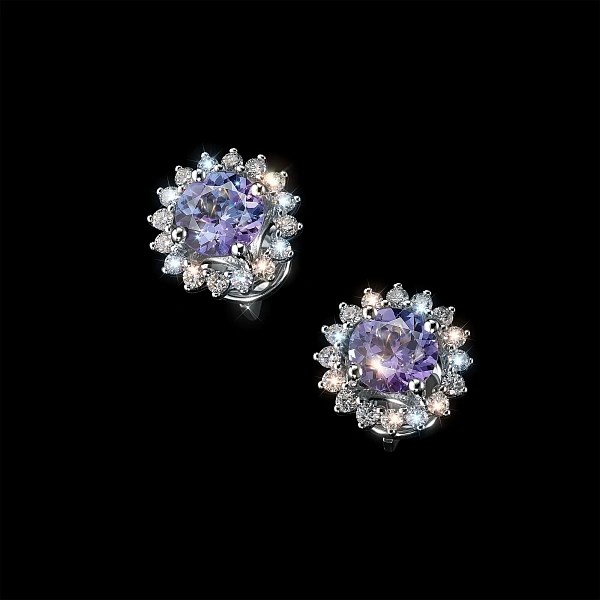 Пусеты из комбинированного золота с и танзанитами — великолепное пополнение вашей коллекции украшений. Комбинированное золото подчеркивает игру света на алмазных гранях, не боится влаги, подходит для повседневного ношения. Наши товары реализуются только в фирменных салонах.