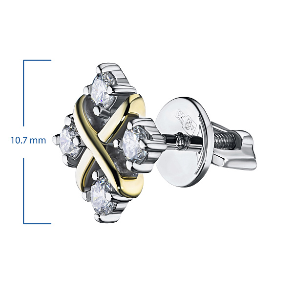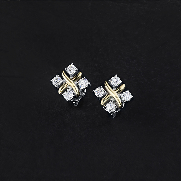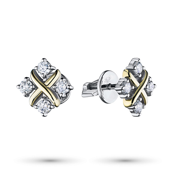 Пусеты из комбинированного золота — великолепное пополнение вашей коллекции украшений. Комбинированное золото подчеркивает игру света на алмазных гранях, не боится влаги, подходит для повседневного ношения. Наши товары реализуются только в фирменных салонах.