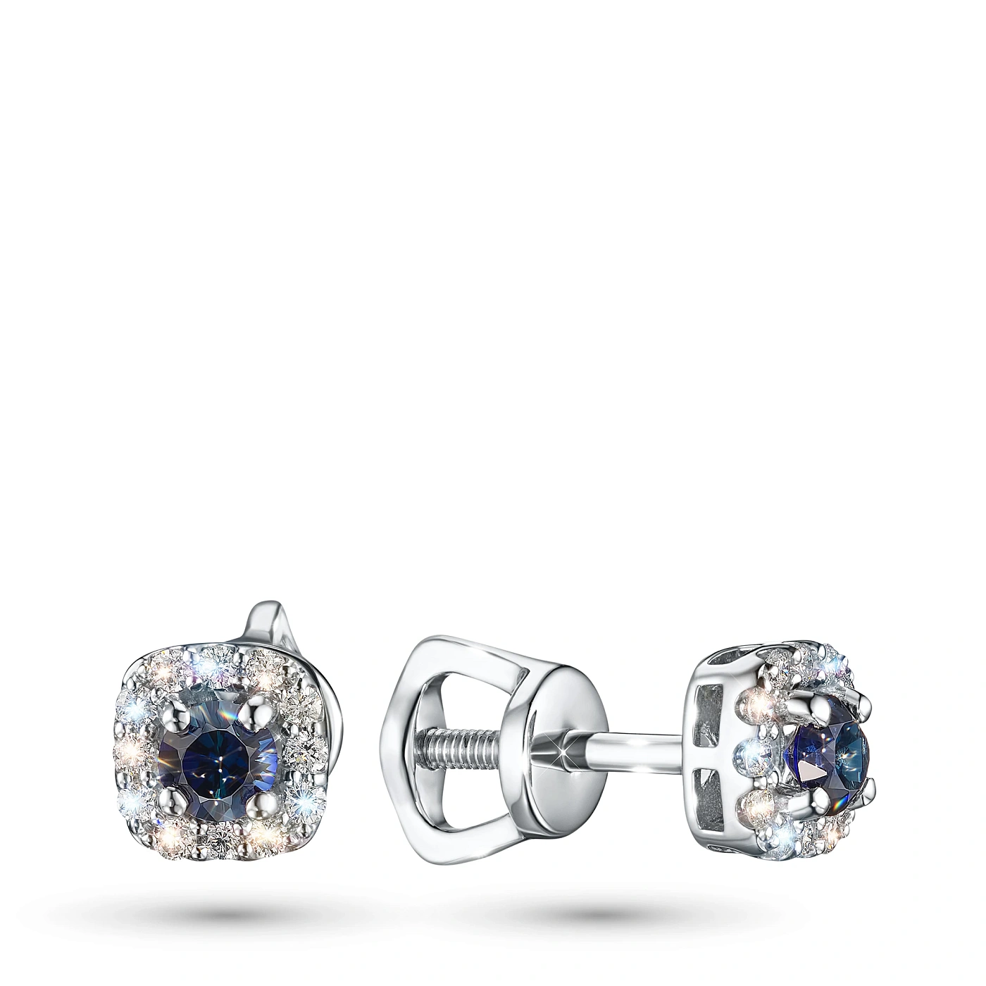 Пусеты из серебра с и сапфирами — великолепное пополнение вашей коллекции украшений. Серебро подчеркивает игру света на алмазных гранях, не боится влаги, подходит для повседневного ношения. Наши товары реализуются только в фирменных салонах.