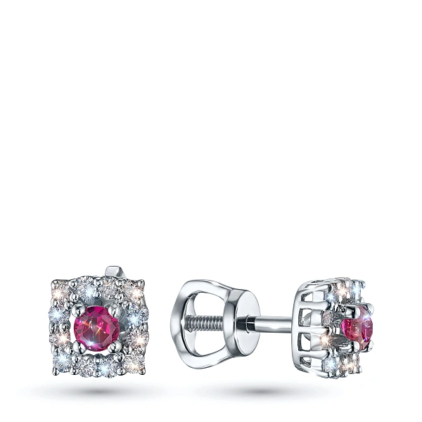 Пусеты из серебра с и рубинами — великолепное пополнение вашей коллекции украшений. Серебро подчеркивает игру света на алмазных гранях, не боится влаги, подходит для повседневного ношения. Наши товары реализуются только в фирменных салонах.