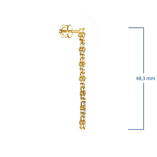 Перед вами — стильные серьги весом 3.85 грамма. Изделия прошли опробование в пробирной палате РФ (585 проба). Поставляются в фирменной упаковке. Ознакомьтесь с нашим каталогом, возможно, вы захотите подобрать кольцо или подвеску в тон.