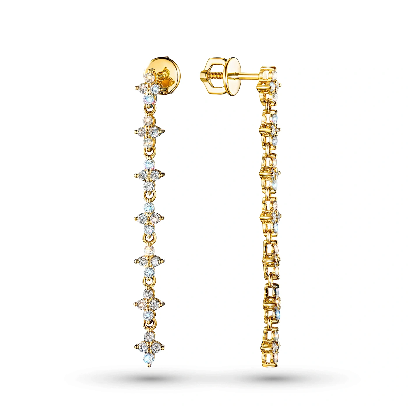 Пусеты из желтого золота — великолепное пополнение вашей коллекции украшений. Желтое золото подчеркивает игру света на алмазных гранях, не боится влаги, подходит для повседневного ношения. Наши товары реализуются только в фирменных салонах.