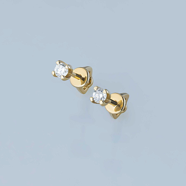 Пусеты из желтого золота — великолепное пополнение вашей коллекции украшений. Желтое золото подчеркивает игру света на алмазных гранях, не боится влаги, подходит для повседневного ношения. Наши товары реализуются только в фирменных салонах.