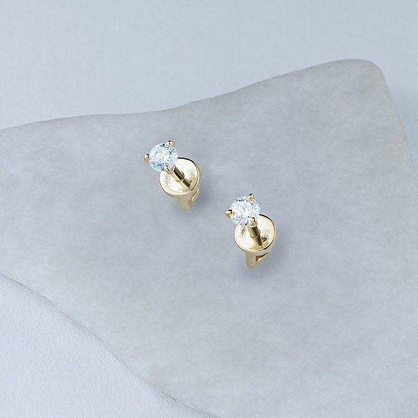 Пусеты из желтого золота — великолепное пополнение вашей коллекции украшений. Желтое золото подчеркивает игру света на алмазных гранях, не боится влаги, подходит для повседневного ношения. Наши товары реализуются только в фирменных салонах.