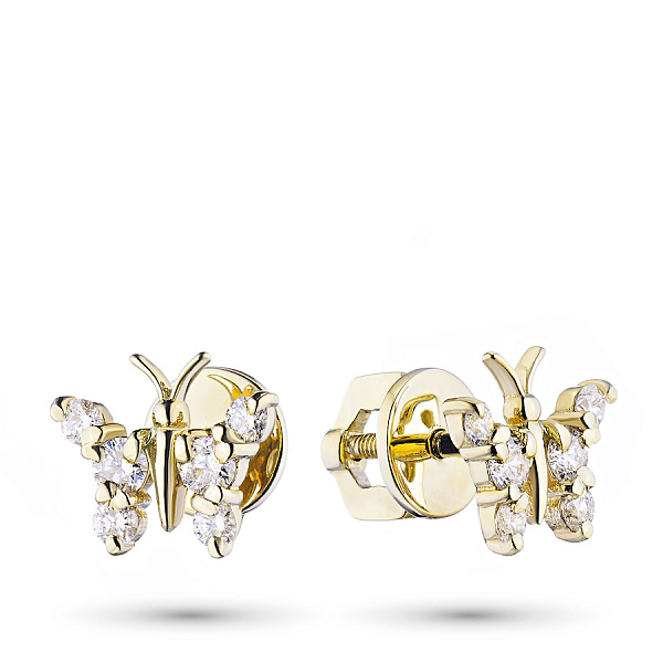 Пусеты из желтого золота — великолепное пополнение вашей коллекции украшений. Желтое золото подчеркивает игру света на алмазных гранях, не боится влаги, подходит для повседневного ношения. Наши товары реализуются только в фирменных салонах.