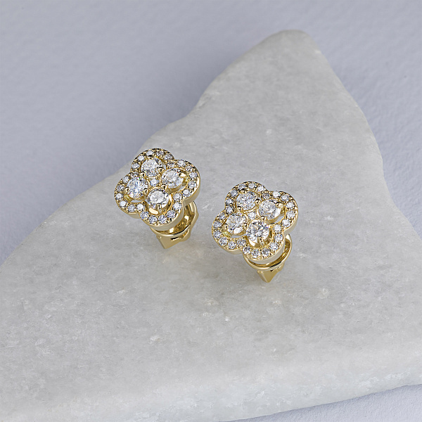 Пусеты из желтого золота — великолепное пополнение вашей коллекции украшений. Желтое золото подчеркивает игру света на алмазных гранях, не боится влаги, подходит для повседневного ношения. Наши товары реализуются только в фирменных салонах.