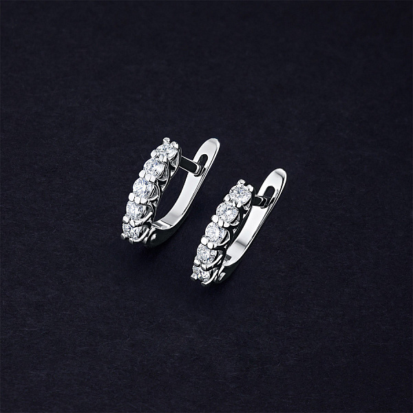 Серьги из белого золота с бриллиантами — великолепное пополнение вашей коллекции украшений. Продается по цене от производителя (889 900 ₸). Ювелирное изделие с настоящими бриллиантами изготовлено на заводе «ЭПЛ Даймонд». Белое золото подчеркивает игру света на алмазных гранях, не боится влаги, подходит для повседневного ношения. Наши товары реализуются только в фирменных салонах.