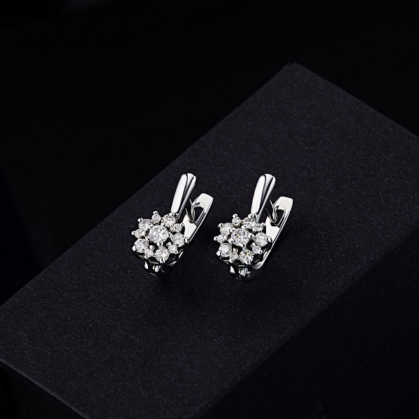 Серьги из белого золота с бриллиантами — великолепное пополнение вашей коллекции украшений. Продается по цене от производителя (791 000 ₸). Ювелирное изделие с настоящими бриллиантами изготовлено на заводе «ЭПЛ Даймонд». Белое золото подчеркивает игру света на алмазных гранях, не боится влаги, подходит для повседневного ношения. Наши товары реализуются только в фирменных салонах.