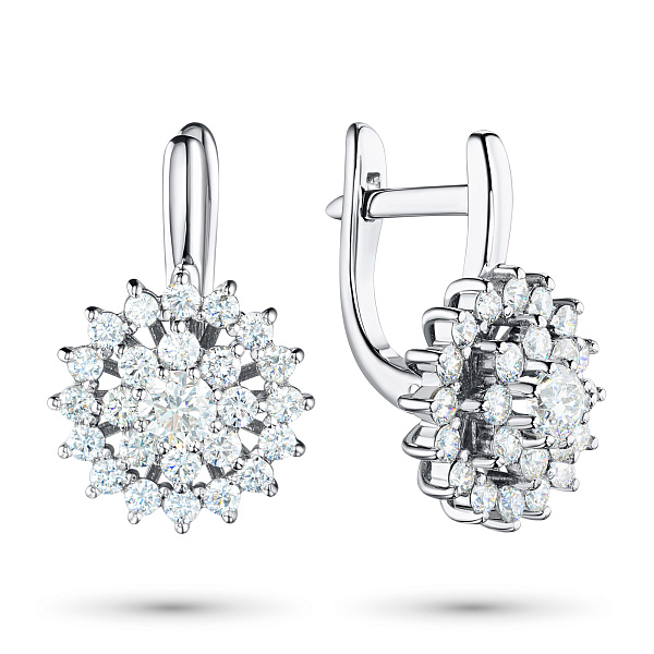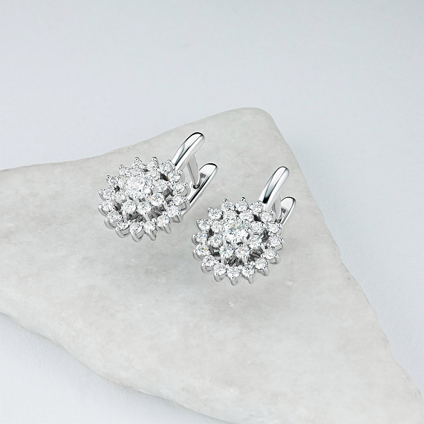 Серьги из белого золота — великолепное пополнение вашей коллекции украшений. Белое золото подчеркивает игру света на алмазных гранях, не боится влаги, подходит для повседневного ношения. Наши товары реализуются только в фирменных салонах.