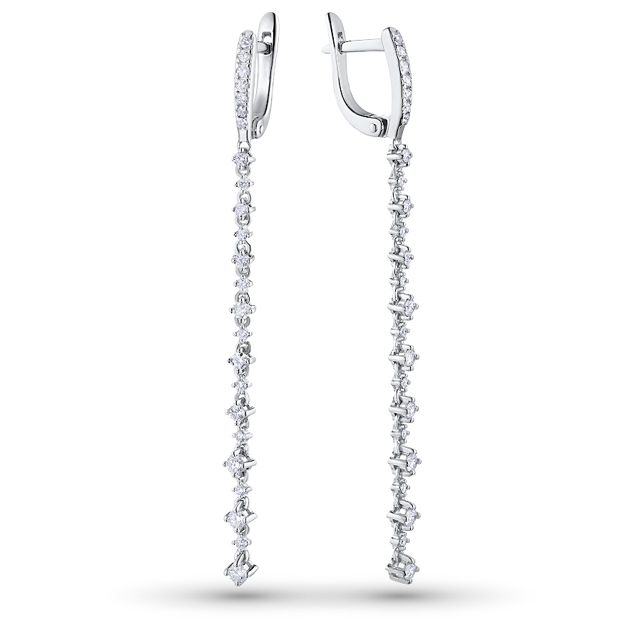 Серьги из белого золота — великолепное пополнение вашей коллекции украшений. Белое золото подчеркивает игру света на алмазных гранях, не боится влаги, подходит для повседневного ношения. Наши товары реализуются только в фирменных салонах.