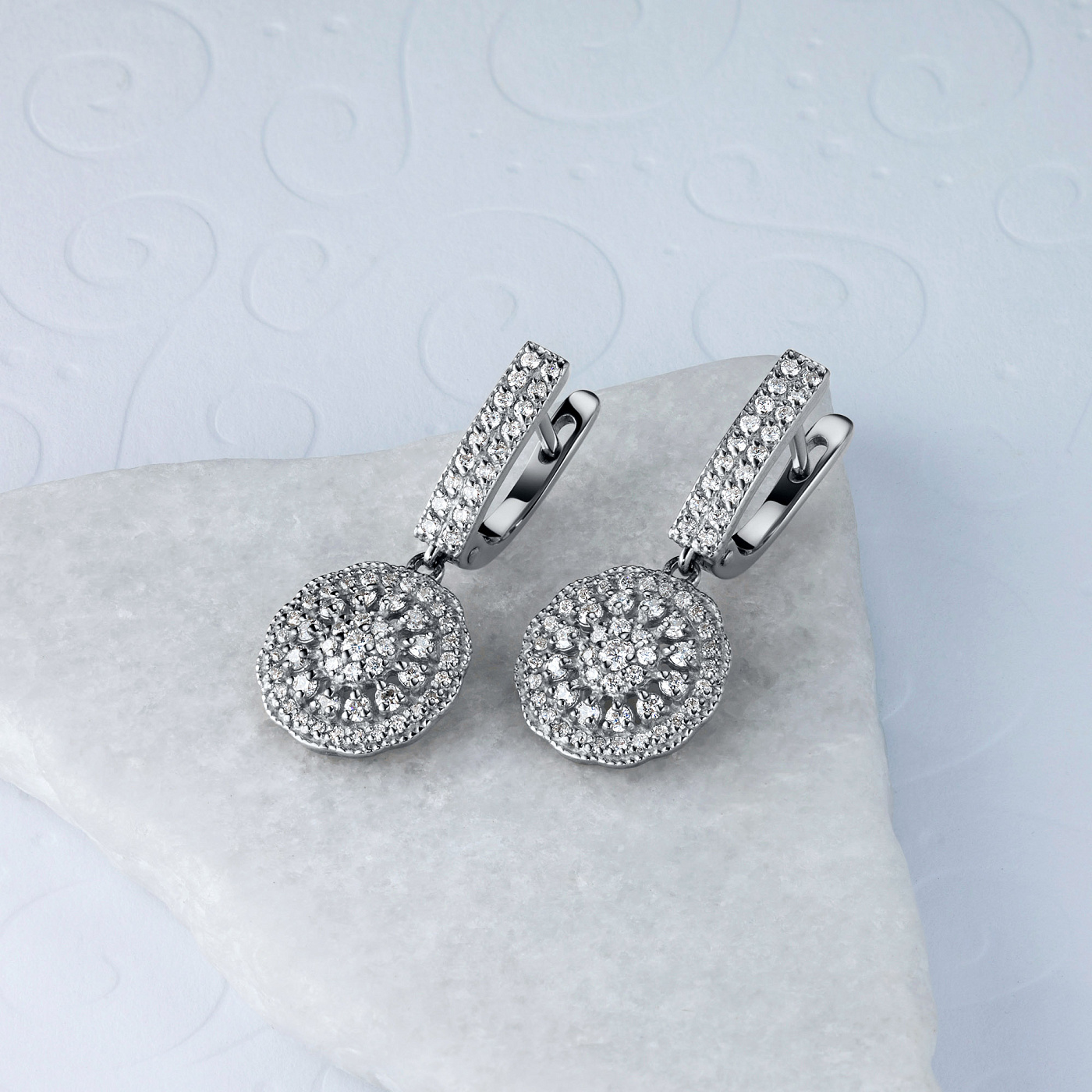 Серьги из белого золота — великолепное пополнение вашей коллекции украшений. Белое золото подчеркивает игру света на алмазных гранях, не боится влаги, подходит для повседневного ношения. Наши товары реализуются только в фирменных салонах.