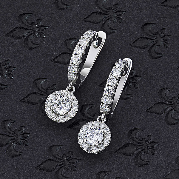 Серьги из белого золота — великолепное пополнение вашей коллекции украшений. Белое золото подчеркивает игру света на алмазных гранях, не боится влаги, подходит для повседневного ношения. Наши товары реализуются только в фирменных салонах.