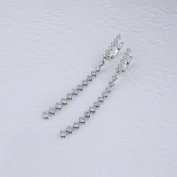 Серьги из белого золота — великолепное пополнение вашей коллекции украшений. Белое золото подчеркивает игру света на алмазных гранях, не боится влаги, подходит для повседневного ношения. Наши товары реализуются только в фирменных салонах.