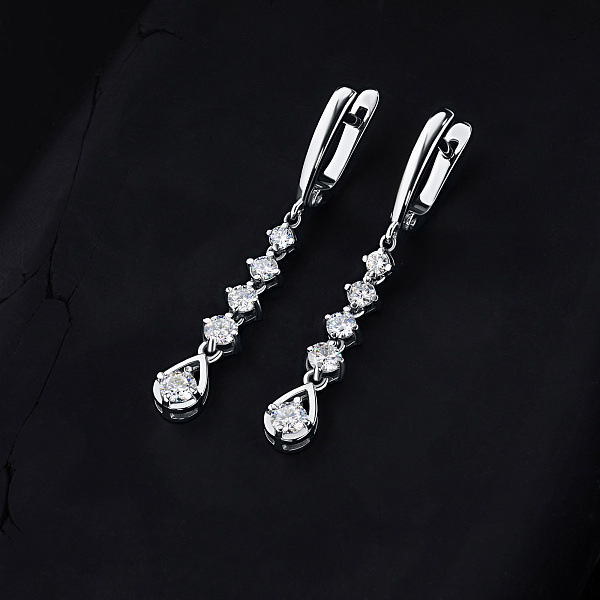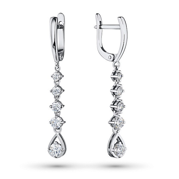 Серьги из белого золота — великолепное пополнение вашей коллекции украшений. Белое золото подчеркивает игру света на алмазных гранях, не боится влаги, подходит для повседневного ношения. Наши товары реализуются только в фирменных салонах.