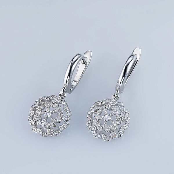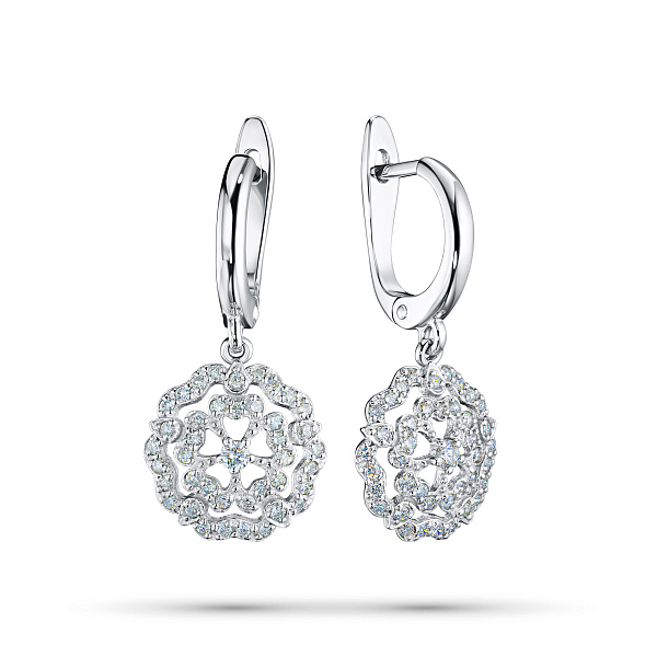 Серьги из белого золота — великолепное пополнение вашей коллекции украшений. Белое золото подчеркивает игру света на алмазных гранях, не боится влаги, подходит для повседневного ношения. Наши товары реализуются только в фирменных салонах.