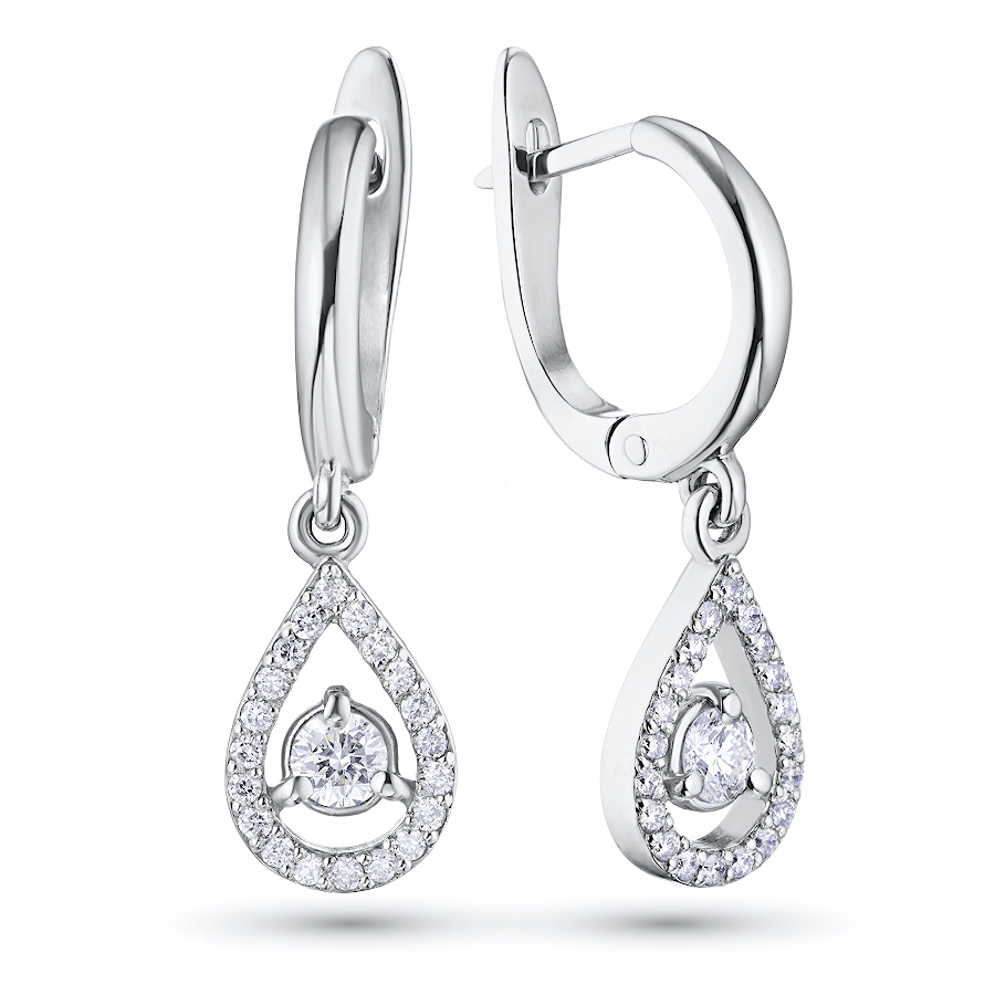 Серьги из белого золота — великолепное пополнение вашей коллекции украшений. Продается по цене от производителя (960 000 ₸). Ювелирное изделие с настоящими бриллиантами изготовлено на заводе «ЭПЛ Даймонд». Белое золото подчеркивает игру света на алмазных гранях, не боится влаги, подходит для повседневного ношения. Наши товары реализуются только в фирменных салонах.