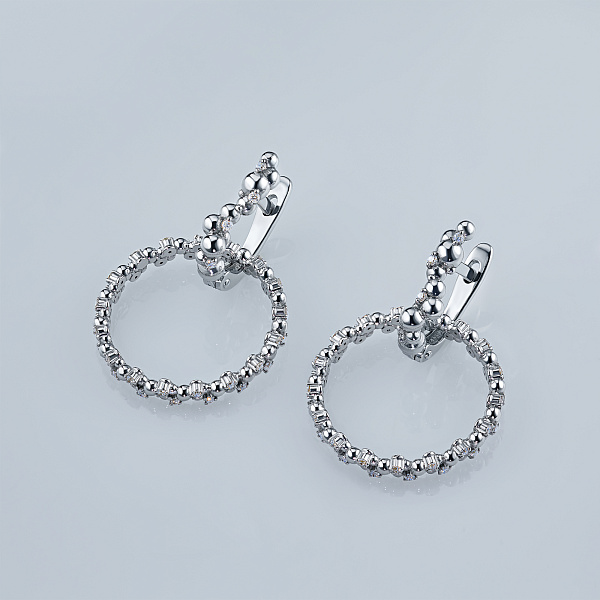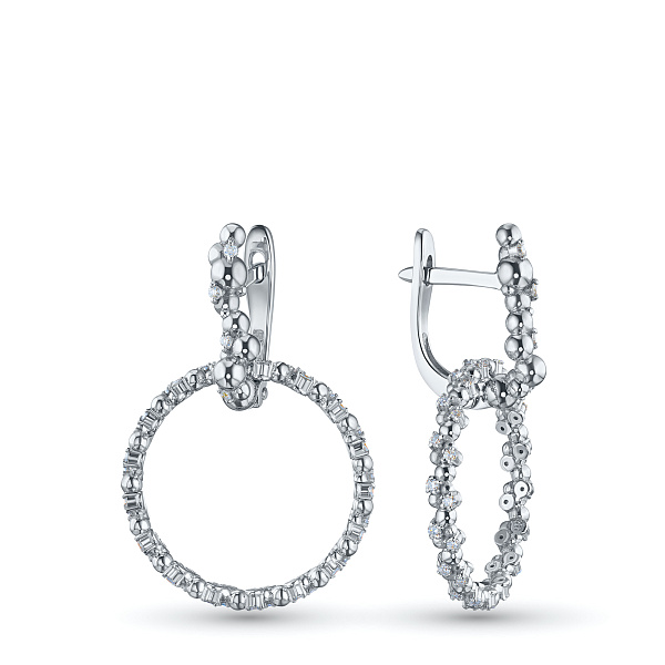 Серьги из белого золота — великолепное пополнение вашей коллекции украшений. Белое золото подчеркивает игру света на алмазных гранях, не боится влаги, подходит для повседневного ношения. Наши товары реализуются только в фирменных салонах.