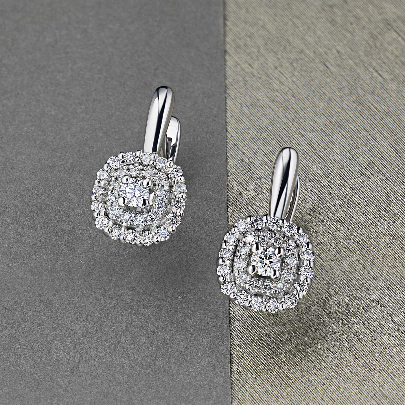 Серьги из белого золота — великолепное пополнение вашей коллекции украшений. Белое золото подчеркивает игру света на алмазных гранях, не боится влаги, подходит для повседневного ношения. Наши товары реализуются только в фирменных салонах.