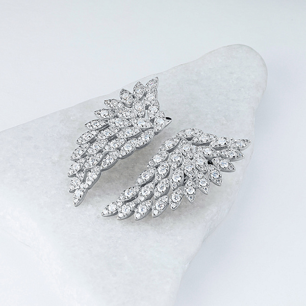 Серьги из белого золота — великолепное пополнение вашей коллекции украшений. Белое золото подчеркивает игру света на алмазных гранях, не боится влаги, подходит для повседневного ношения. Наши товары реализуются только в фирменных салонах.