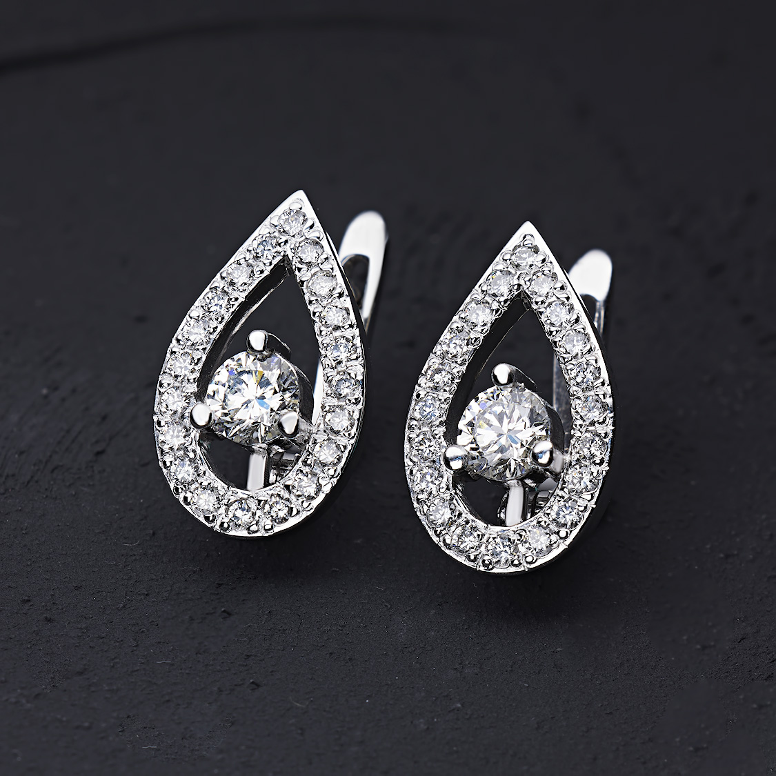 Серьги из белого золота — великолепное пополнение вашей коллекции украшений. Белое золото подчеркивает игру света на алмазных гранях, не боится влаги, подходит для повседневного ношения. Наши товары реализуются только в фирменных салонах.
