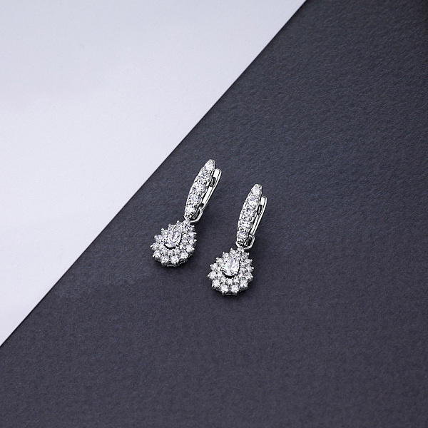 Серьги из белого золота — великолепное пополнение вашей коллекции украшений. Белое золото подчеркивает игру света на алмазных гранях, не боится влаги, подходит для повседневного ношения. Наши товары реализуются только в фирменных салонах.