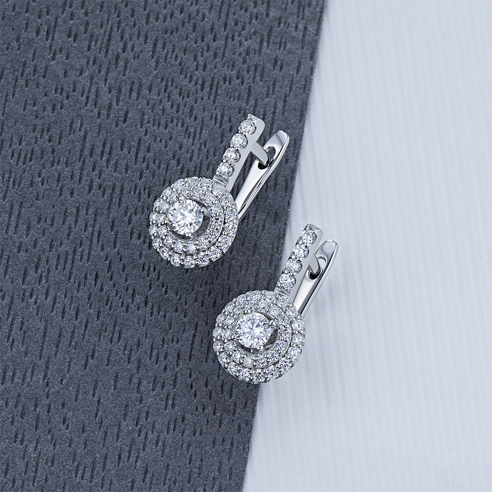 Серьги из белого золота — великолепное пополнение вашей коллекции украшений. Белое золото подчеркивает игру света на алмазных гранях, не боится влаги, подходит для повседневного ношения. Наши товары реализуются только в фирменных салонах.
