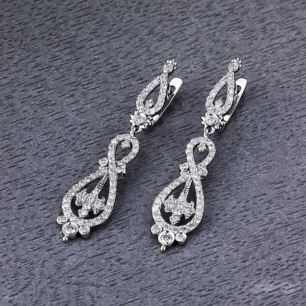 Перед вами — стильные серьги весом 4.45 грамма. Изделия прошли опробование в пробирной палате РФ (585 проба). Поставляются в фирменной упаковке. Ознакомьтесь с нашим каталогом, возможно, вы захотите подобрать кольцо или подвеску в тон.